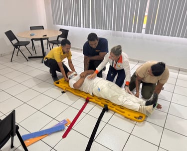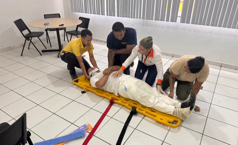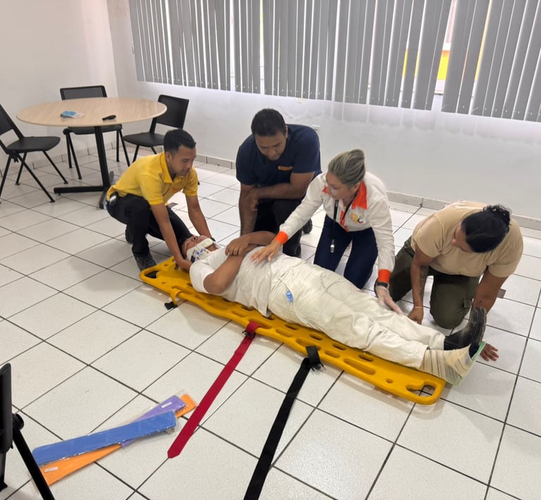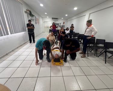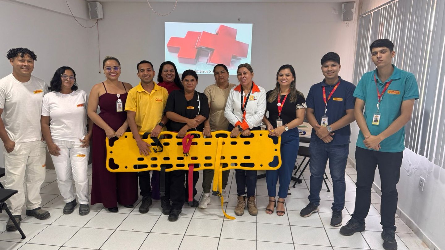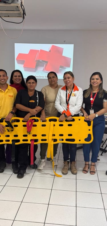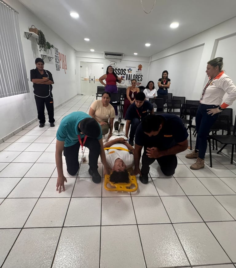 Capacitação prática em primeiros socorros realizada com a equipe na Fábrica Vitória.
